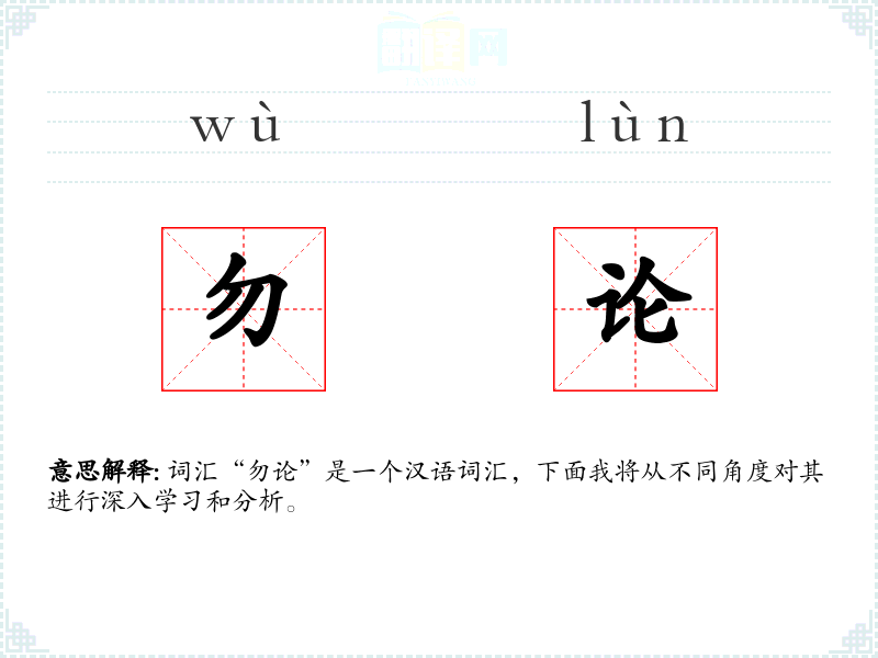 “勿论”字面意思为“不要讨论”或“不考虑”。它通常用来表示在某种情况下,某个话题或因素不被纳入考虑范围。