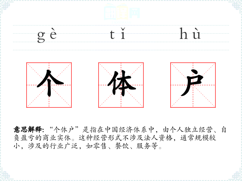 “个体户”是指在**经济体系中,由个人独立经营、自负盈亏的商业实体。这种经营形式不涉及法人资格,通常规模较小,涉及的行业广泛,如零售、餐饮、服务等。