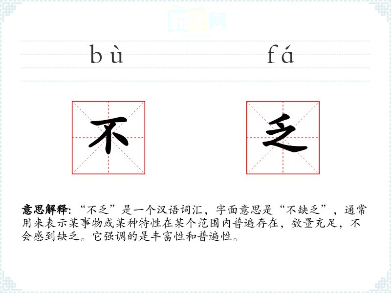 “不乏”是一个汉语词汇,字面意思是“不缺乏”,通常用来表示某事物或某种特性在某个范围内普遍存在,数量充足,不会感到缺乏。它强调的是丰富性和普遍性。