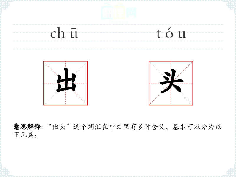 "出头"的意思解释、出头是什么意思由翻译网汉语词典查词提供。