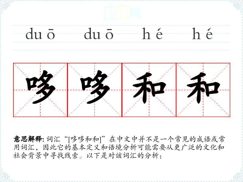 词汇“[哆哆和和]”在中文中并不是一个常见的成语或常用词汇,因此它的基本定义和语境分析可能需要从更广泛的文化和社会背景中寻找线索。以下是对该词汇的分析: