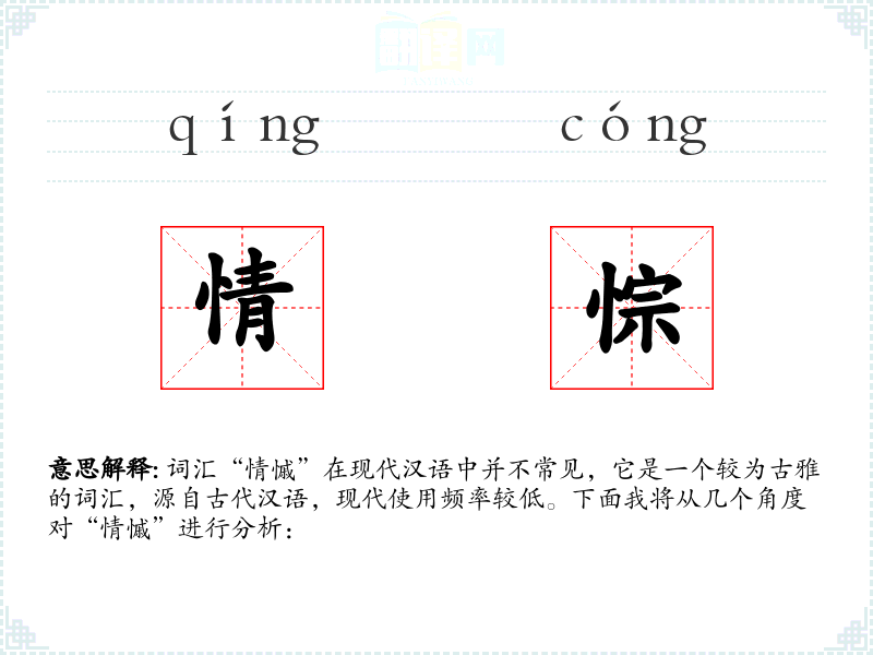 词汇“情慽”在现代汉语中并不常见,它是一个较为古雅的词汇,源自古代汉语,现代使用频率较低。下面我将从几个角度对“情慽”进行分析: