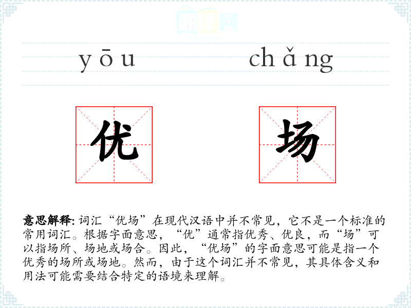 "优场"的意思解释、优场是什么意思由翻译网汉语词典查词提供。