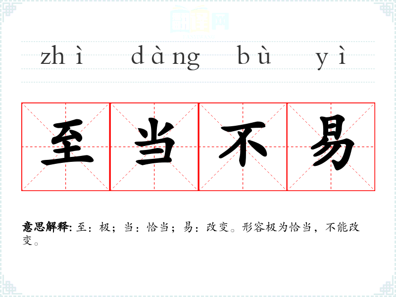 至:极;当:恰当;易:改变。形容极为恰当,不能改变。