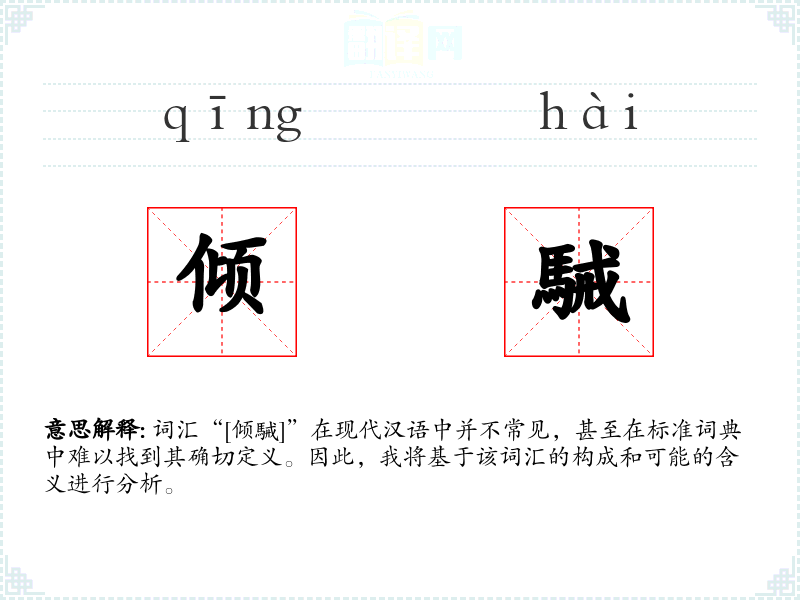 词汇“[倾駴]”在现代汉语中并不常见,甚至在标准词典中难以找到其确切定义。因此,我将基于该词汇的构成和可能的含义进行分析。