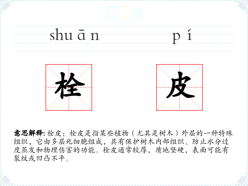 "栓皮"的意思解释、栓皮是什么意思由翻译网汉语词典查词提供。