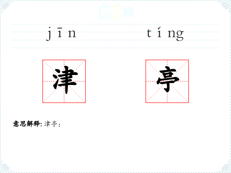 - 字面意思:津,指渡口;亭,指供人休息的小建筑。