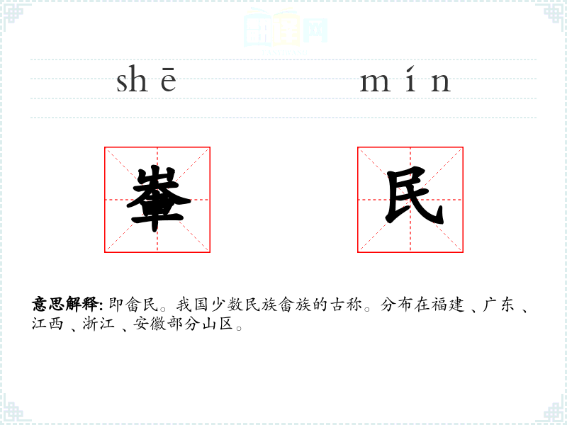 即畲民。我国少数民族畲族的古称。分布在福建﹑广东﹑江西﹑浙江﹑安徽部分山区。