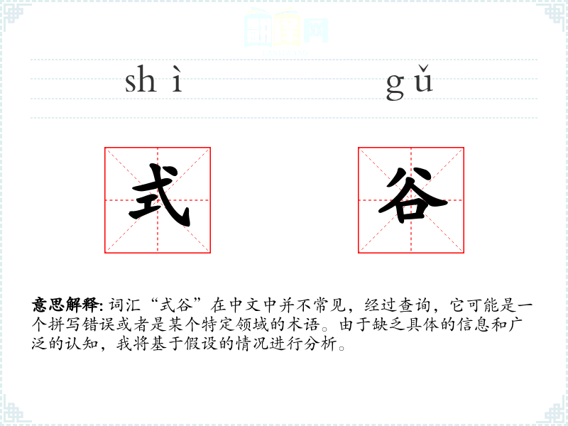 词汇“式谷”在中文中并不常见,经过查询,它可能是一个拼写错误或者是某个特定领域的术语。由于缺乏具体的信息和广泛的认知,我将基于假设的情况进行分析。