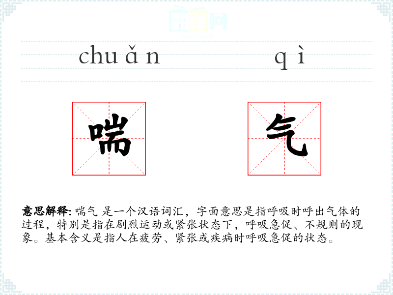 “喘气”一词源于古汉语,字面由“喘”和“气”组成,“喘”意为急促的呼吸,“气”指呼吸的气体。在古代文献中已有使用,如《说文解字》中提到“喘,疾息也”。