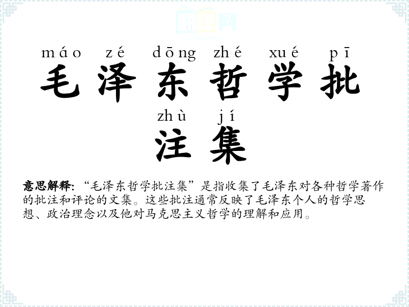 "毛泽东哲学批注集"的意思解释、毛泽东哲学批注集是什么意思由翻译网汉语词典查词提供。