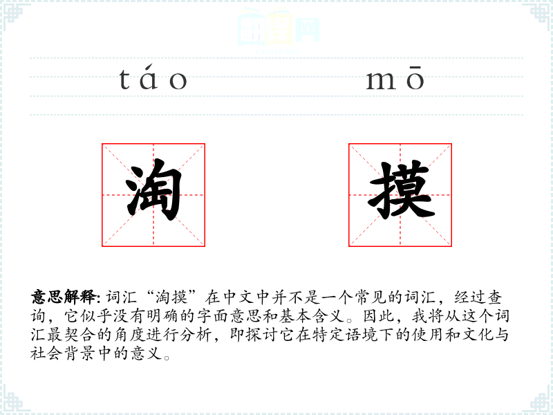 由于“淘摸”不是一个标准的汉语词汇,我们无法提供一个确切的基本定义。