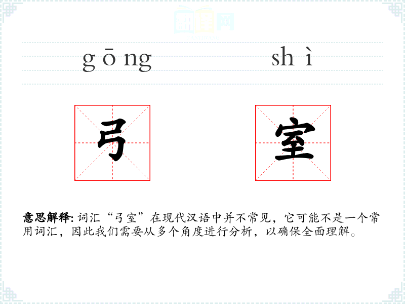 词汇“弓室”在现代汉语中并不常见,它可能不是一个常用词汇,因此我们需要从多个角度进行分析,以确保全面理解。