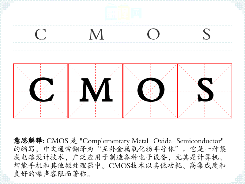 在不同语言中,CMOS的名称和解释基本一致,因为它是一个基于技术术语的缩写,不受语言文化差异的影响。