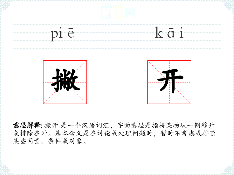 "撇开"的意思解释、撇开是什么意思由翻译网汉语词典查词提供。