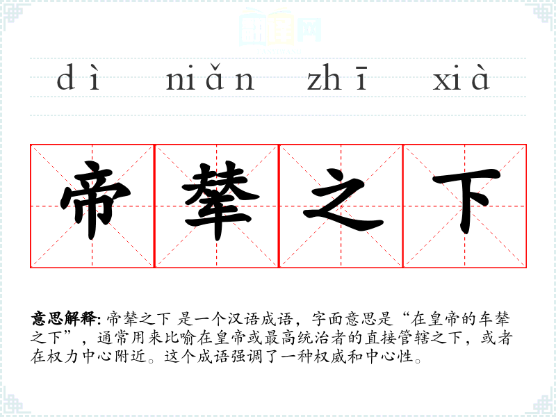 在传统文化中,和皇权是核心元素。因此,“帝辇之下”这个成语反映了古代社会对皇权的敬畏和尊重,以及对权力中心的向往。