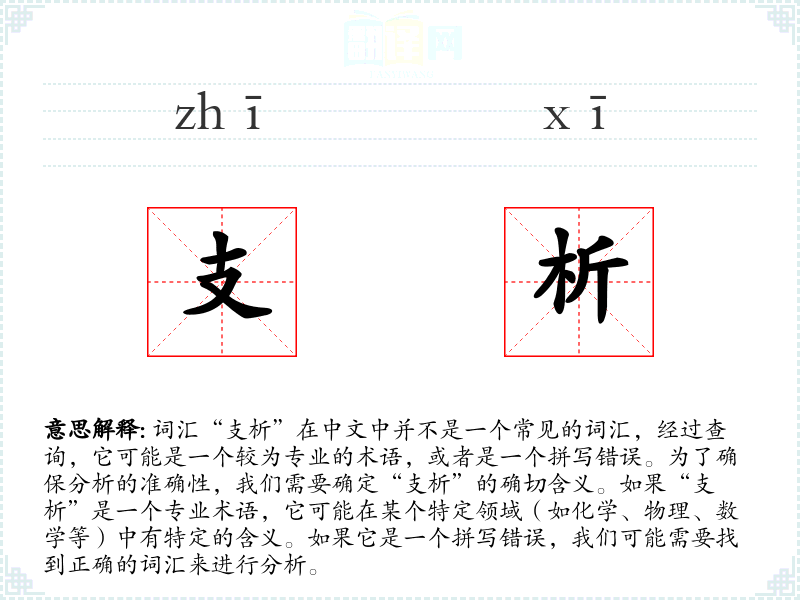然而,由于“支析”不是一个明确的词汇,上述分析仅是假设性的。如果“支析”是一个拼写错误,我们建议找到正确的词汇进行深入学习和分析。