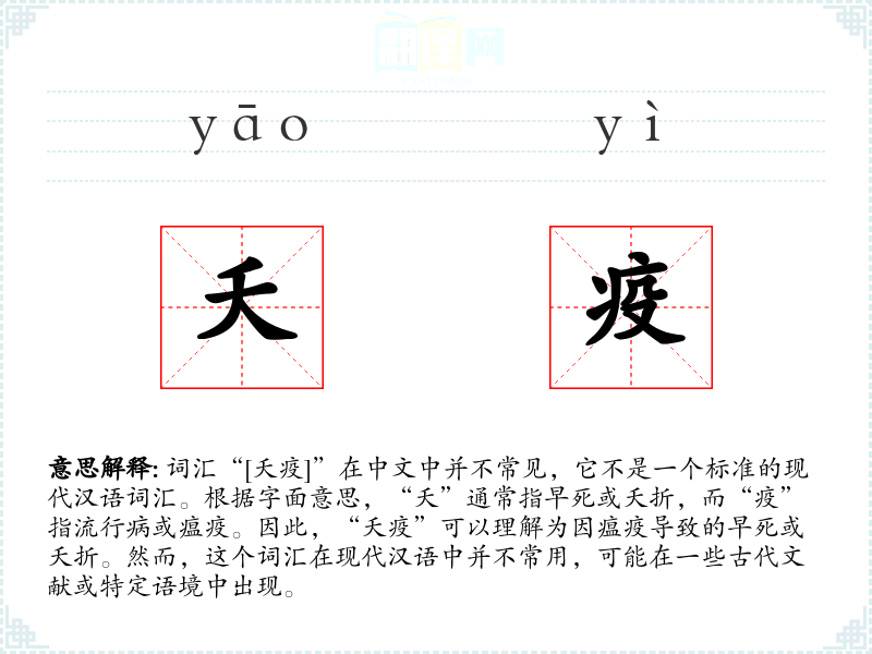 "夭疫"的意思解释、夭疫是什么意思由翻译网汉语词典查词提供。