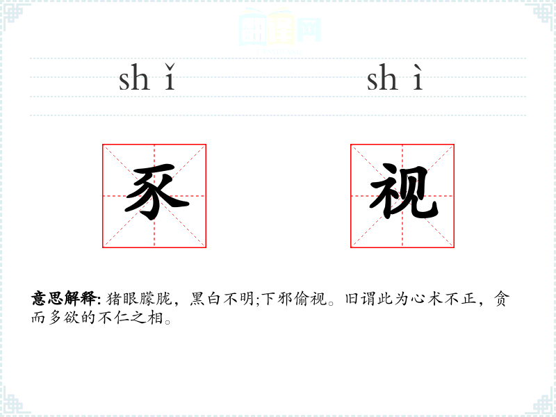 猪眼朦胧,黑白不明;下邪偷视。旧谓此为