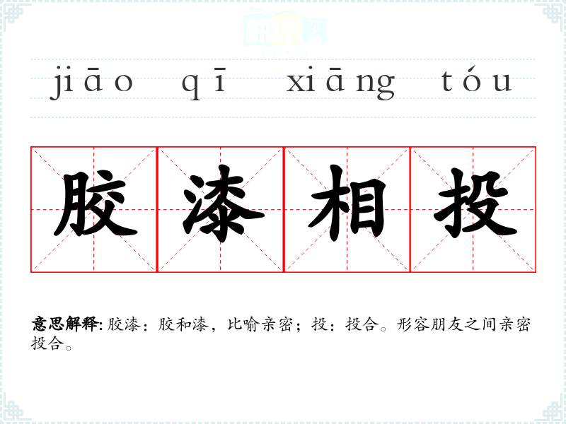 胶漆:胶和漆,比喻亲密;投:投合。形容朋友之间亲密投合。