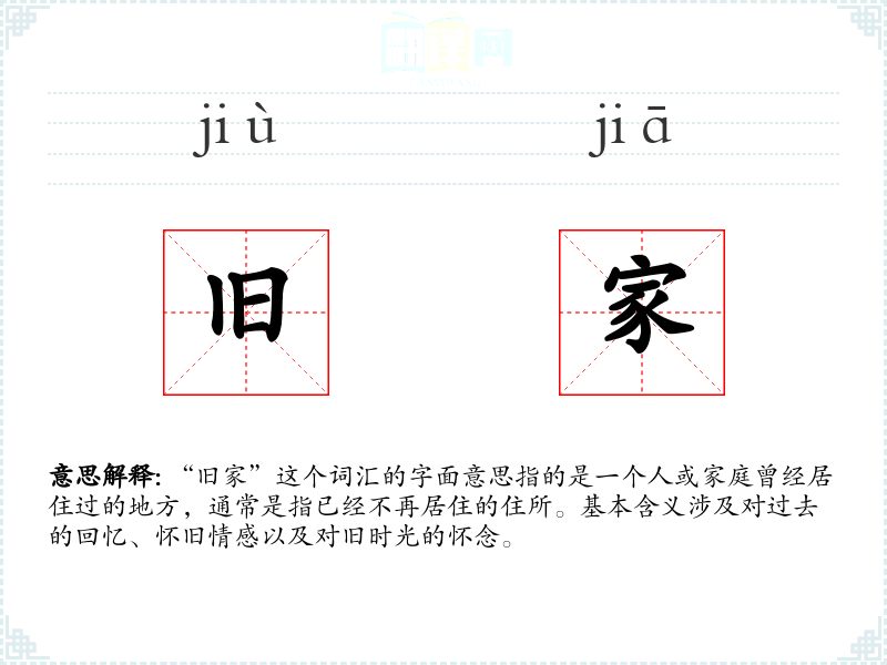 ※ "旧家"的意思解释、旧家是什么意思由翻译网汉语词典查词提供。
