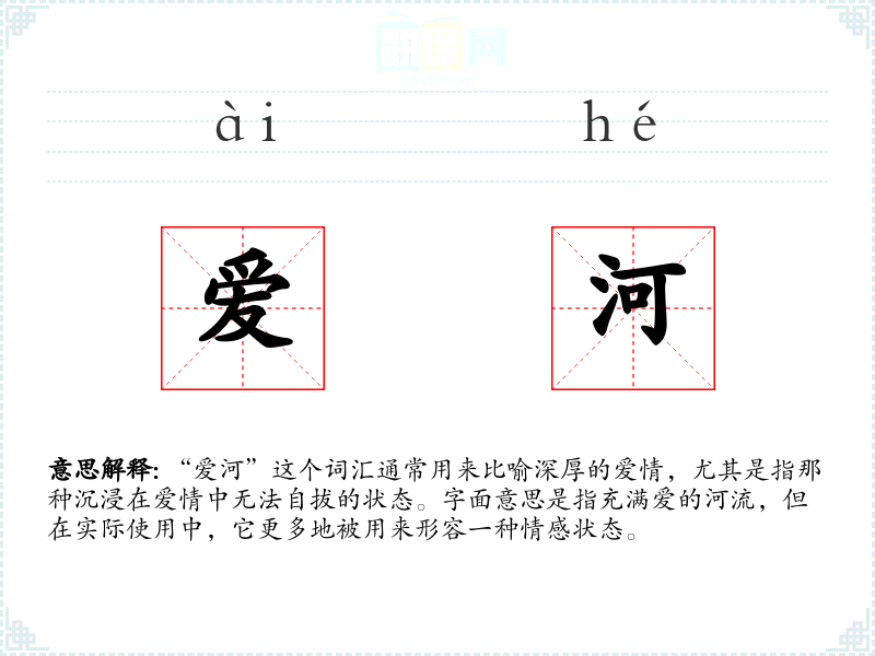“爱河”这个词汇通常用来比喻深厚的爱情,尤其是指那种沉浸在爱情中无法自拔的状态。字面意思是指充满爱的河流,但在实际使用中,它更多地被用来形容一种情感状态。