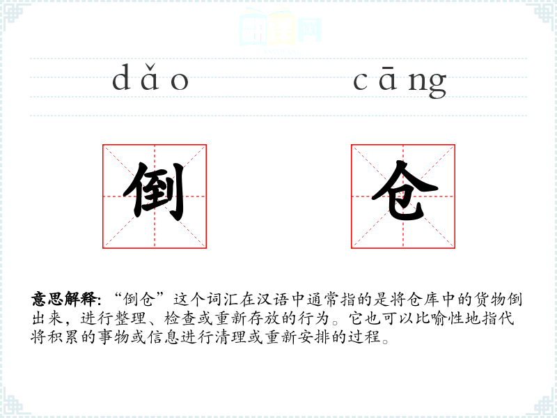 "倒仓"的意思解释、倒仓是什么意思由翻译网汉语词典查词提供。