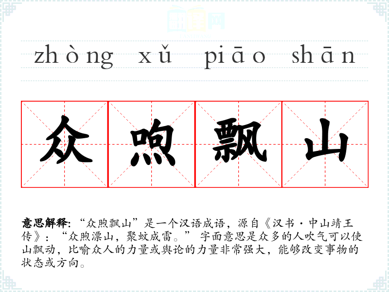 "众喣飘山"的意思解释、众喣飘山是什么意思由翻译网汉语词典查词提供。
