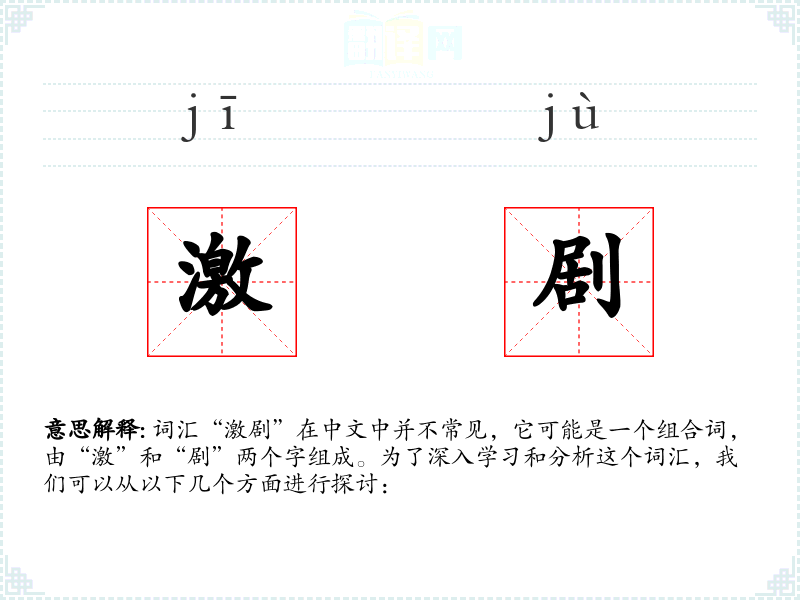 词汇“激剧”在中文中并不常见,它可能是一个组合词,由“激”和“剧”两个字组成。为了深入学*和分析这个词汇,我们可以从以下几个方面进行探讨: