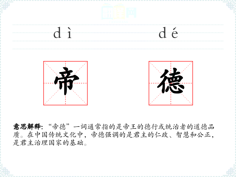 在**传统文化中,帝德是评价一个帝王是否合格的重要标准。一个有德的帝王能够得到天命,维持国家的长治久安。