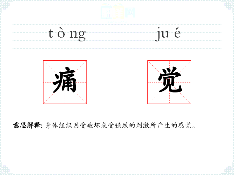 身体组织因受破坏或受强烈的刺激所产生的感觉。