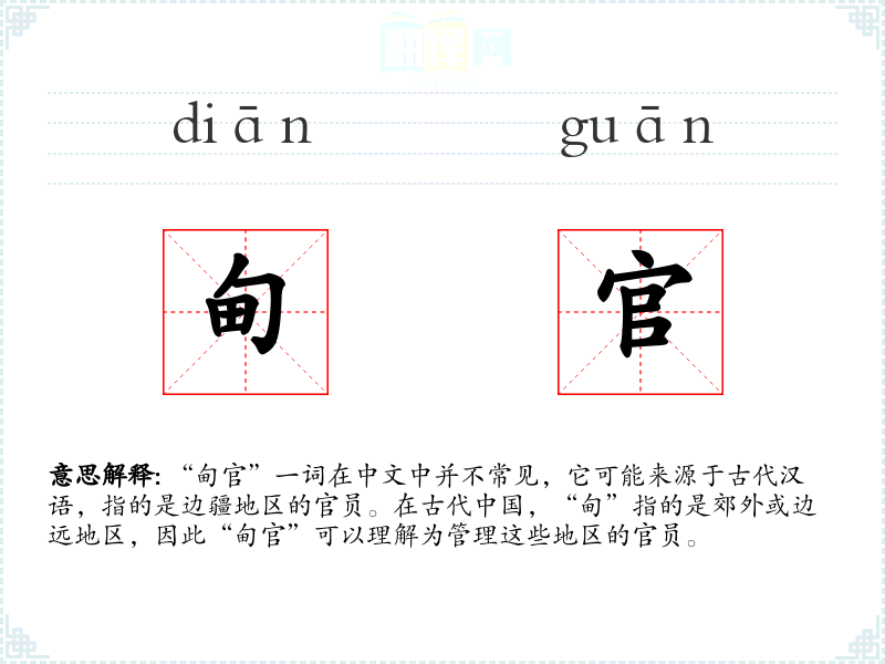 “甸官”一词在中文中并不常见,它可能来源于古代汉语,指的是边疆地区的官员。在古代**,“甸”指的是郊外或边远地区,因此“甸官”可以理解为管理这些地区的官员。