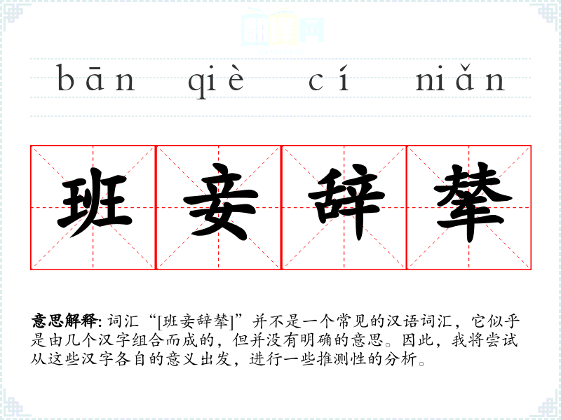 由于“班妾辞辇”不是一个已知的词汇,以下是基于这些字的可能组合: