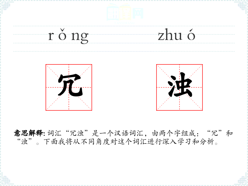 词汇“冗浊”是一个汉语词汇,由两个字组成:“冗”和“浊”。下面我将从不同角度对这个词汇进行深入学习和分析。