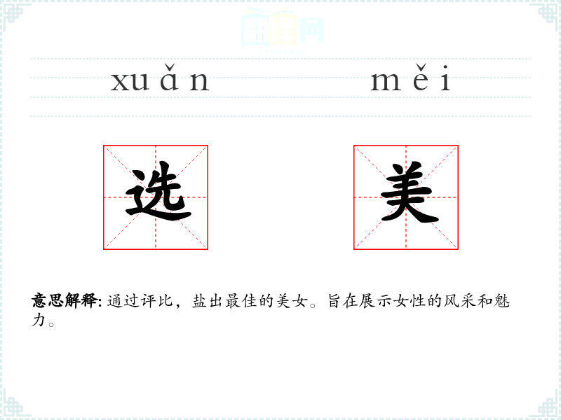 通过评比,盐出最佳的美女。旨在展示女性的风采和魅力。