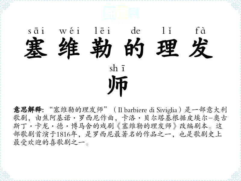 “塞维勒的理发师”不仅是一部歌剧的名称,也是一个文化符号,代表着调解、安排和幽默。在语言学*和表达中,了解这个词汇的背景和用法,可以丰富我们的文化知识和语言运用能力。