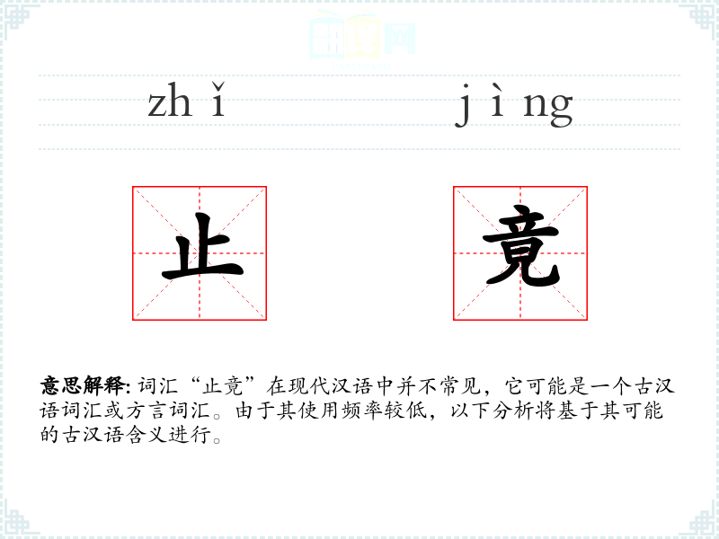词汇“止竟”在现代汉语中并不常见,它可能是一个古汉语词汇或方言词汇。由于其使用频率较低,以下分析将基于其可能的古汉语含义进行。