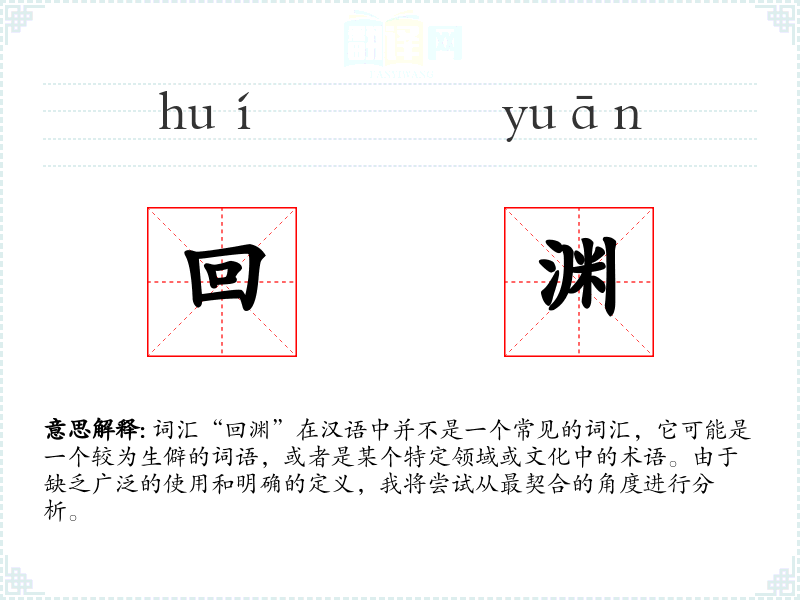 由于“回渊”不是一个常用词汇,它在不同语言或文化中的对应词汇可能不太明确。在其他语言中,可能没有直接对应的词汇。