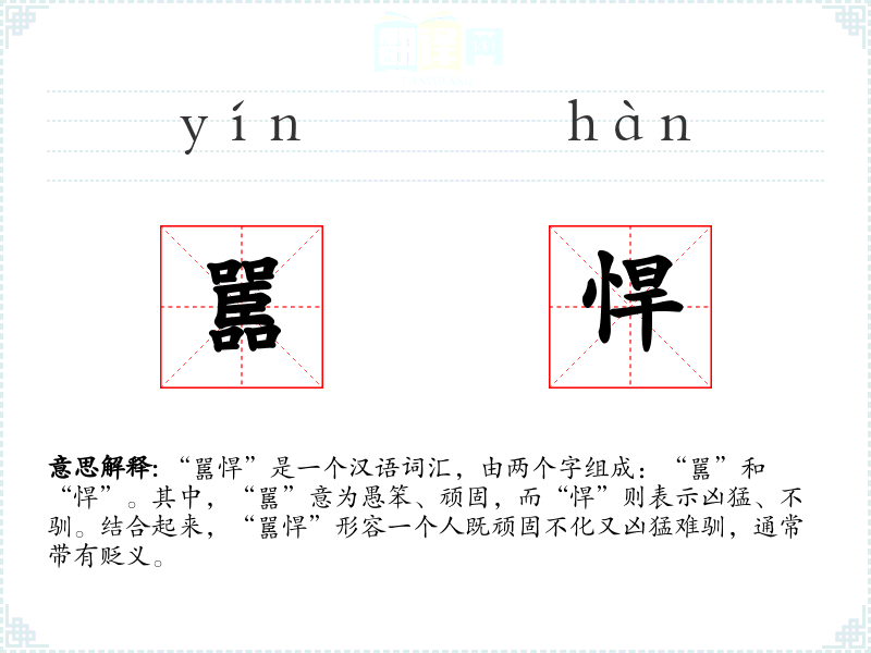 “嚚悍”是一个汉语词汇,由两个字组成:“嚚”和“悍”。其中,“嚚”意为愚笨、顽固,而“悍”则表示凶猛、不驯。结合起来,“嚚悍”形容一个人既顽固不化又凶猛难驯,通常带有贬义。