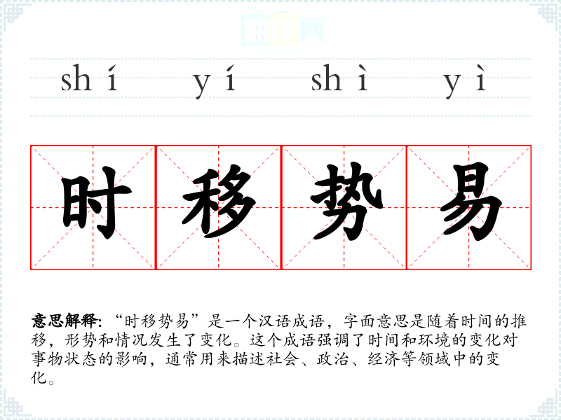 “时移势易”是一个汉语成语,字面意思是随着时间的推移,形势和情况发生了变化。这个成语强调了时间和环境的变化对事物状态的影响,通常用来描述社会、政治、经济等领域中的变化。