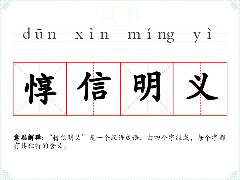 “惇信明义”是一个汉语成语,由四个字组成,每个字都有其独特的含义: