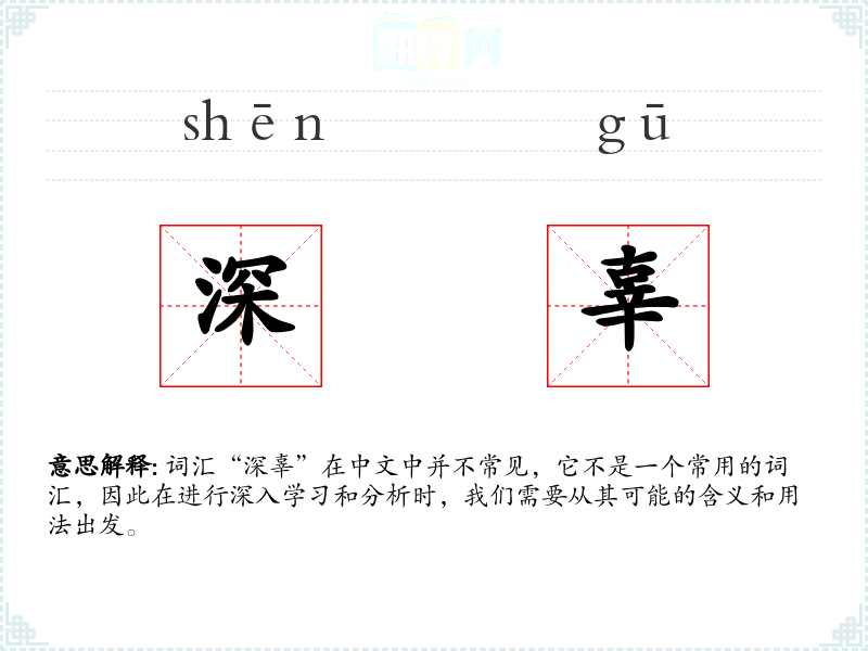 词汇“深辜”在中文中并不常见,它不是一个常用的词汇,因此在进行深入学*和分析时,我们需要从其可能的含义和用法出发。