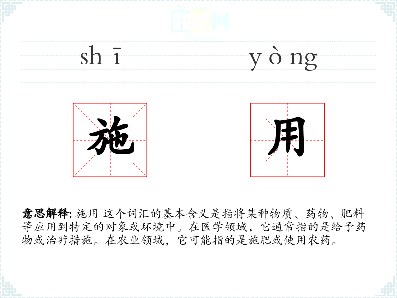 "施用"的意思解释、施用是什么意思由翻译网汉语词典查词提供。