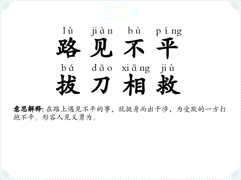 路见不平,拔刀相救的分字解释