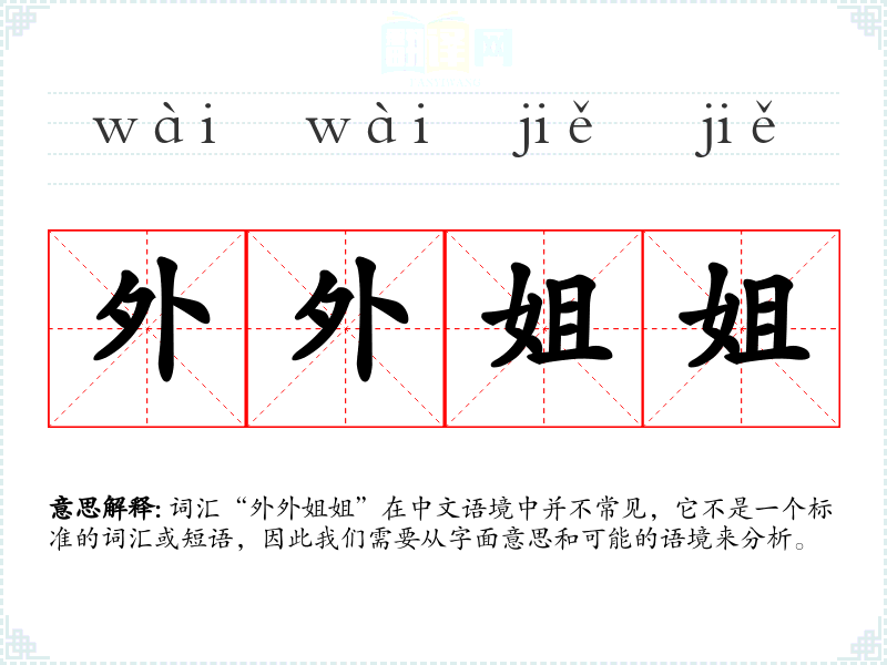 词汇“外外姐姐”在中文语境中并不常见,它不是一个标准的词汇或短语,因此我们需要从字面意思和可能的语境来分析。