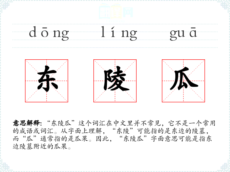 “东陵瓜”这个词汇在中文里并不常见,它不是一个常用的成语或词汇。从字面上理解,“东陵”可能指的是东边的陵墓,而“瓜”通常指的是瓜果。因此,“东陵瓜”字面意思可能是指东边陵墓附近的瓜果。