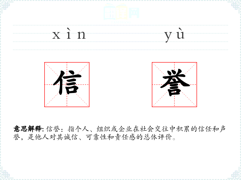 信誉是社会交往中不可或缺的要素,它影响着个人和组织的形象和发展。在语言学*和表达中,理解和运用“信誉”这一词汇,有助于构建更加诚信和可靠的沟通环境。
