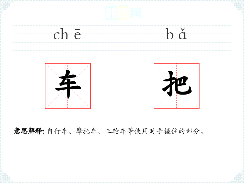 自行车、摩托车、三轮车等使用时手握住的部分。