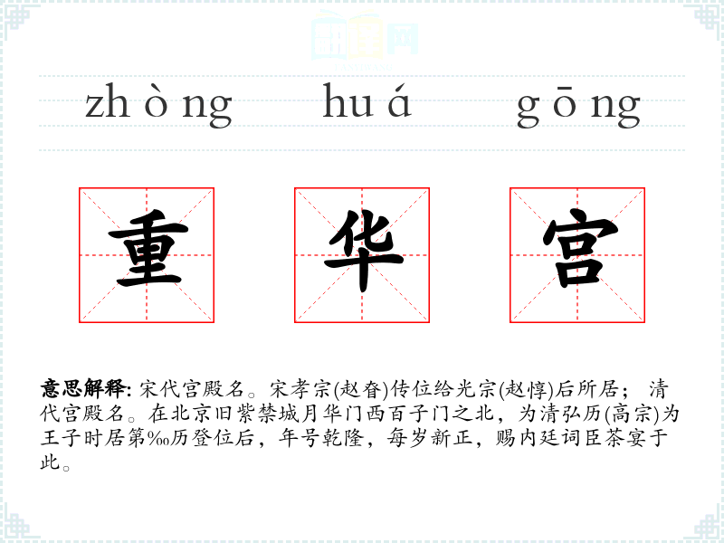 "重华宫"的意思解释、重华宫是什么意思由翻译网汉语词典查词提供。