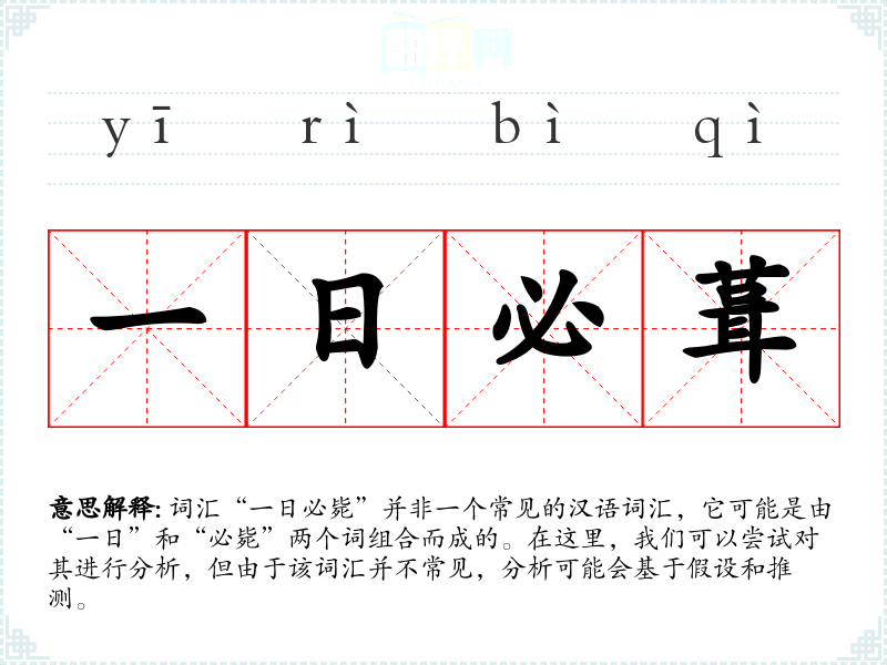 词汇“一日必毙”并非一个常见的汉语词汇,它可能是由“一日”和“必毙”两个词组合而成的。在这里,我们可以尝试对其进行分析,但由于该词汇并不常见,分析可能会基于假设和推测。